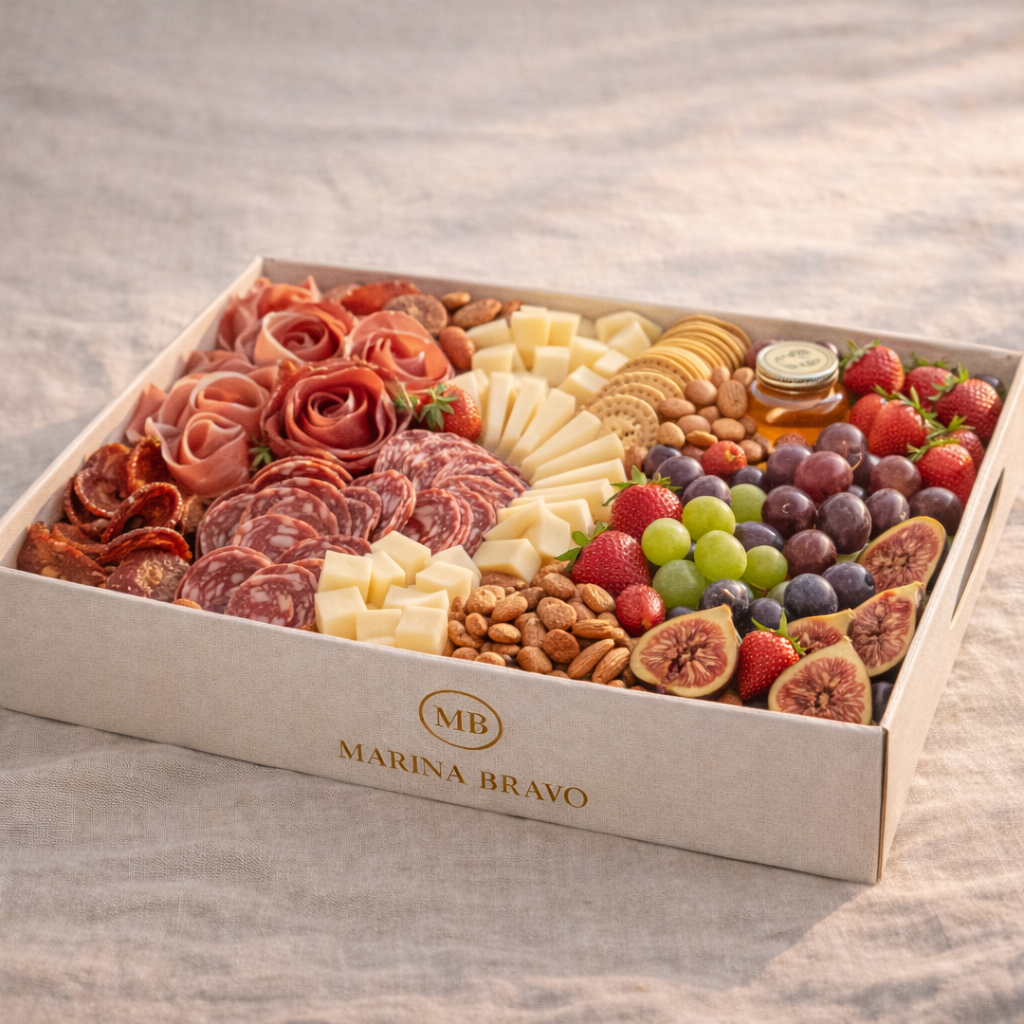 Cada bandeja Marina Bravo se prepara artesanalmente en Mallorca y se entrega lista para disfrutar a bordo.